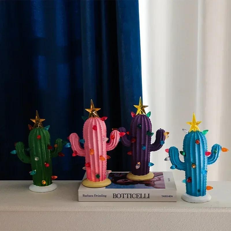 Cactus Resin Decorative Ornaments LED Home Light Design Atmosphere Green Plants Courtyard Desktop Design Atmosphere