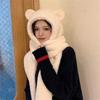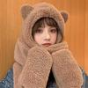 Cute Bear Ear Hat Scarf Gloves Set Winter Women Novelty Caps Warm Casual Plush Hats Casual Solid Fleece Girl Kawaii Accessories