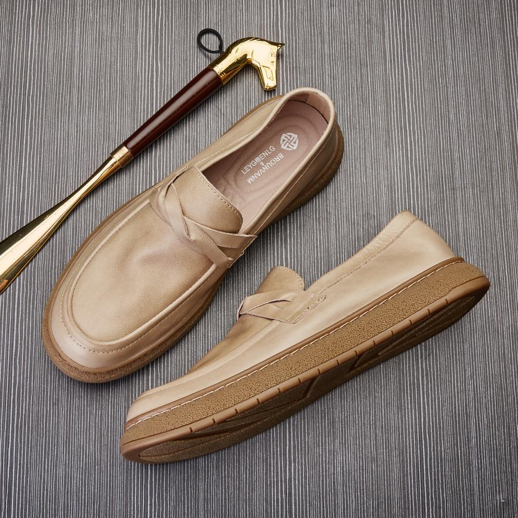 British Leather Foot Cover One Pedal Loafers Men'S Breathable Business Low-Top Casual Leather Shoes Soft-Soled Beanie Shoes Men