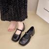 French Retro Square Head Mary Jane Shoes One-Word Leather Shoes Skirt Shallow Mouth Single Shoes Women'S British Style