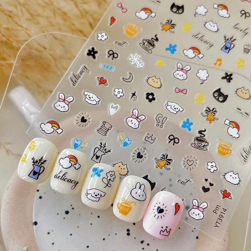 5D Embossed Cute Cartoon Animal Design Nail Art Sticker Decals Self Adhesive Supplies For Women And Girls