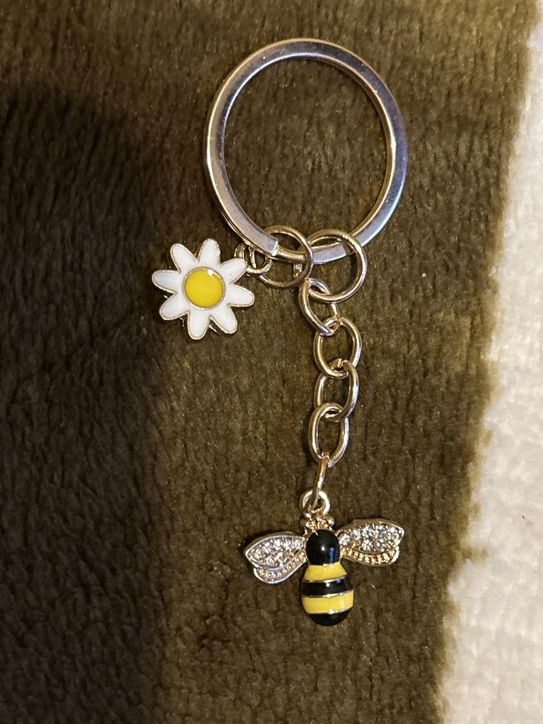 Lovely Cartoon Bee Key Holder Gold Color Zinc Alloy Bee with Daisy Keychains Present for Student Teacher — buy online with free worldwide shipping!