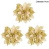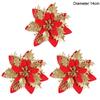 3/10pcs 14cm Christmas Flowers Glitter Red Gold Flower Head Xmas Tree Ornament New Year Decorations for Home Navidad Noel Gifts