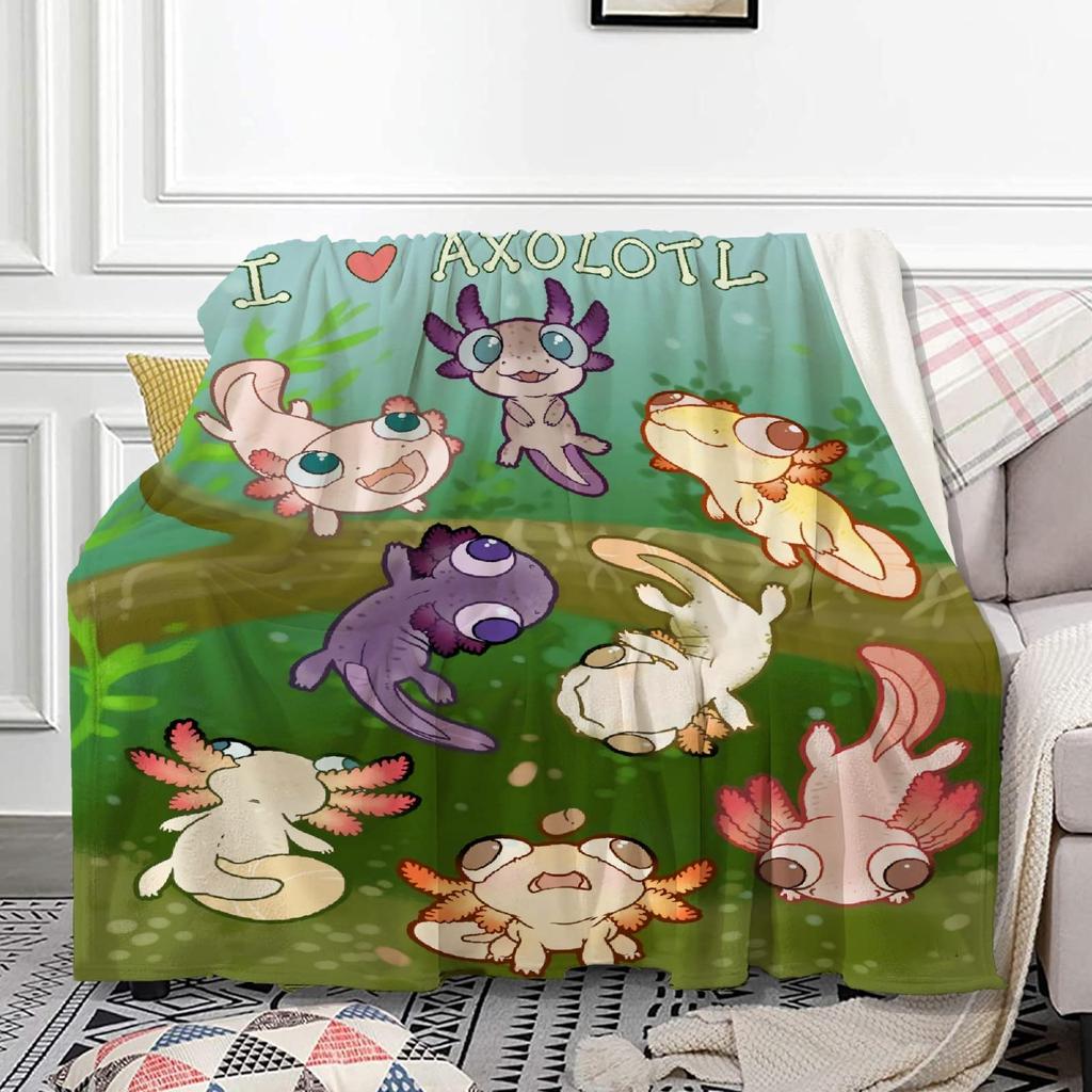 Cartoon Axolotl Blanket Kawaii Ocean Animal Throw Blankets for All Season Seaweed Aquarium Soft Flannel Sofa Blanket for Kids — buy online with free worldwide shipping!