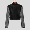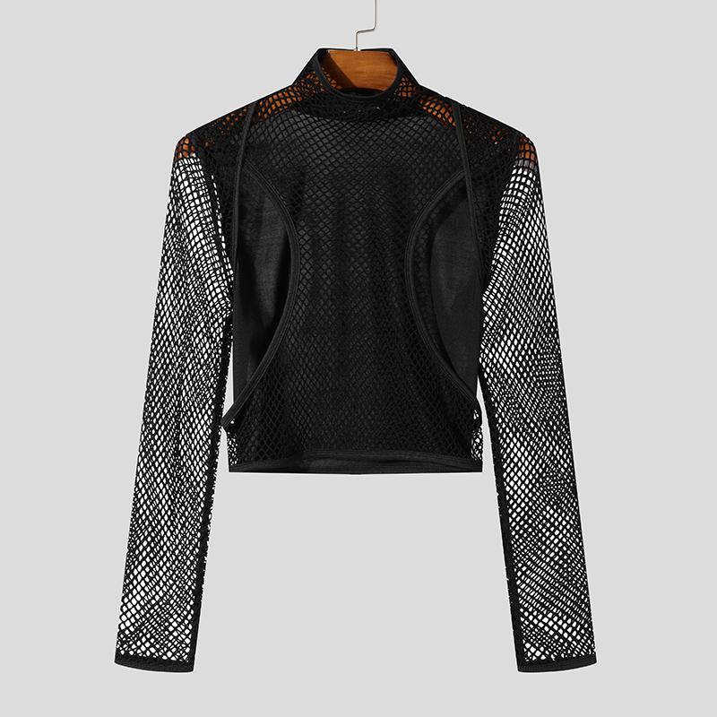 INCERUN Men Mockneck Long Sleeve Mesh Sheer Cutout T-shirts See Through Crop Tops — buy online with free worldwide shipping!