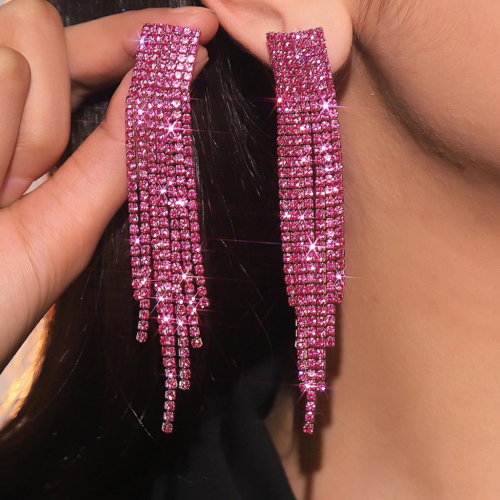 Personalised Super Shiny Rhinestone Long Tassel Earrings Premium Feeling Rhinestone Earrings Photo Earrings Women's Earrings 1 Pair — buy online with free worldwide shipping!