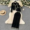 Autumn Winter Women Knitted Sweater Two Piece Set V-neck Jacket Coat and Sleeveless Long Midi Slim Bodycon Sheath Dress Suit