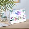 Small Desk Calendar Floral Desktop Standing Calendar, Horizontal Gold Coils Binding Calendar Monthly Flip Schedule For Home Classroom
