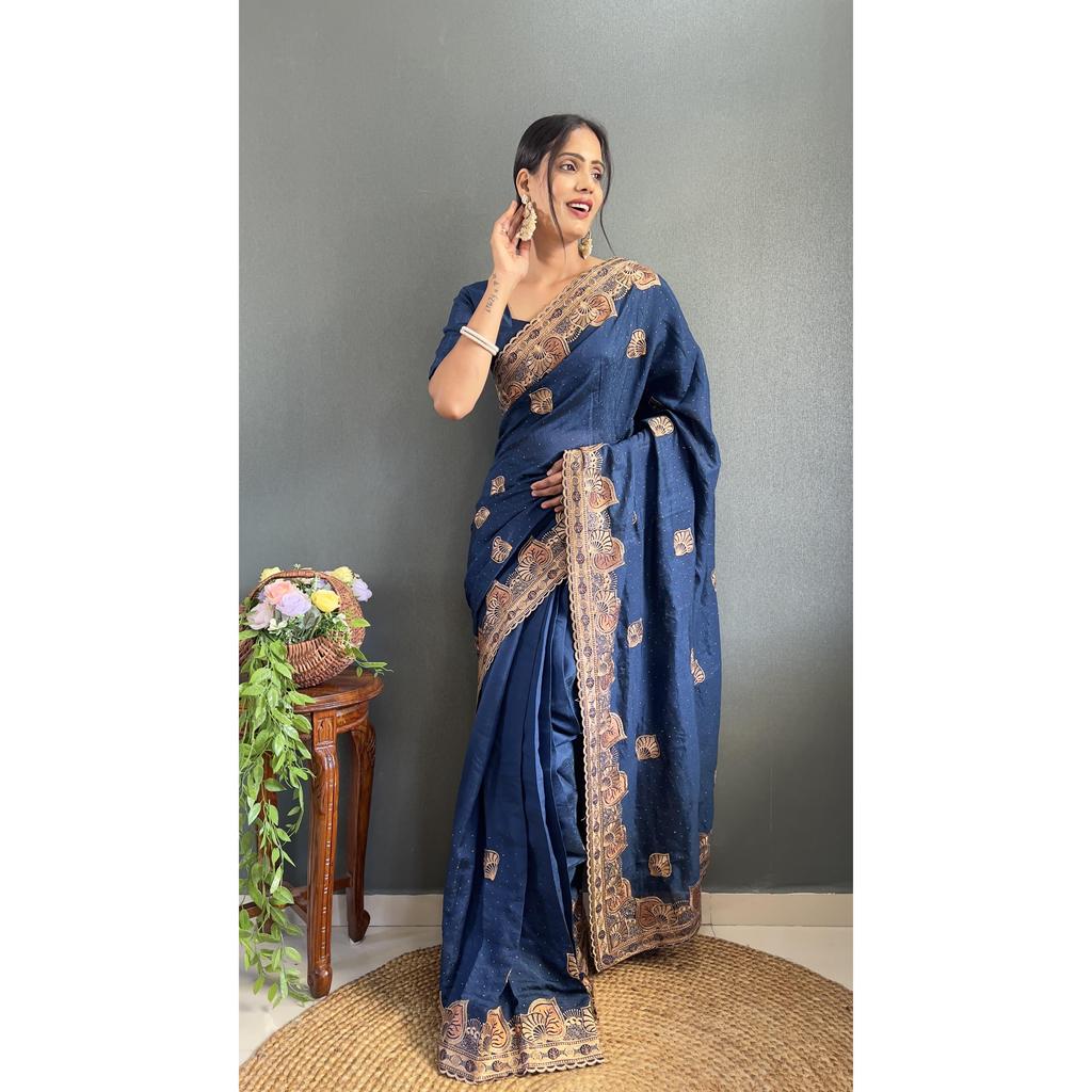 2)Saree fabric : Premium Blooming Simmer Vichitra silk