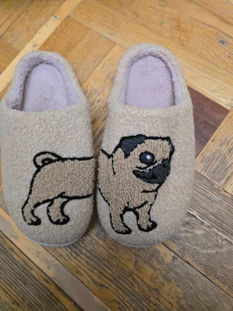 Casual Cartoon Pug Dog Slippers Cozy Warm Cotton Plush Home Slippers with Soft Fabric All-Season Slip-On House Shoes Positioning Printing Technology — buy online with free worldwide shipping!