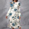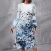 Women's Fashion Casual Print Round Neck Long Sleeve Midi Dress