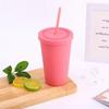 Candy Color Double-layer Plastic Straw Cup Coffee Cup Plastic Frosted Handy Water Cup Easy To Carry Straw Kettle Sports Bottle