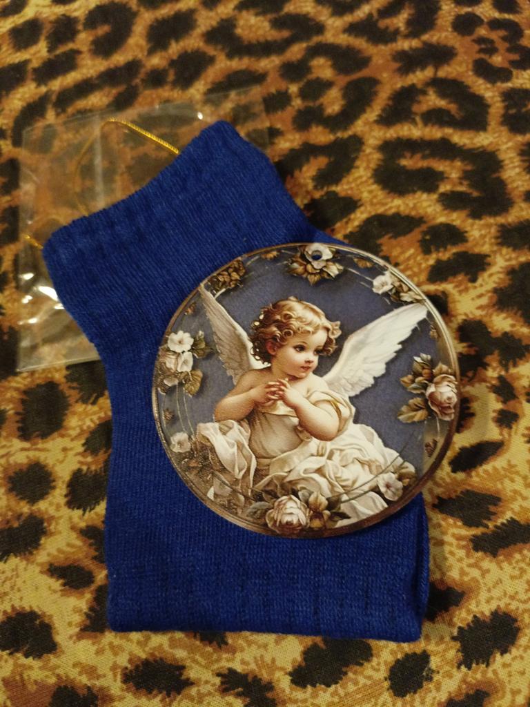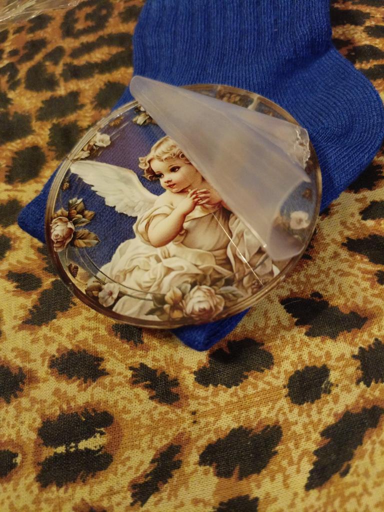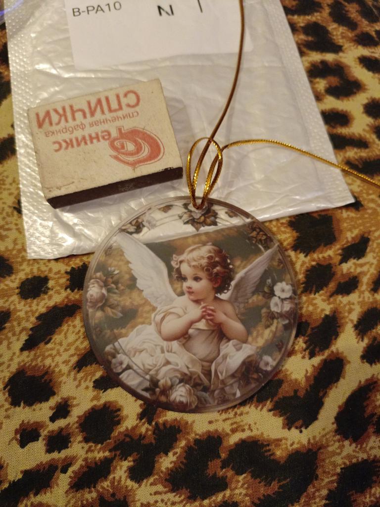 Sweet Angel. beautiful drawing. Bought for a bag. . You need to remove the protective film from the back side - it will be the front, glossy side. . I recommend.