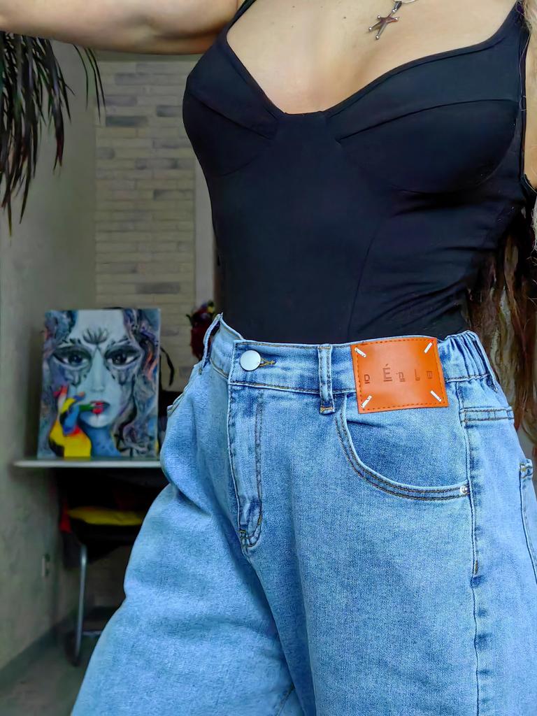 DIMANAF 2025 Women Spring Plus Size Elastic Jeans Pants Female Buttons Straight Basic High Waist Trousers Blue Long Pants — buy online with free worldwide shipping!
