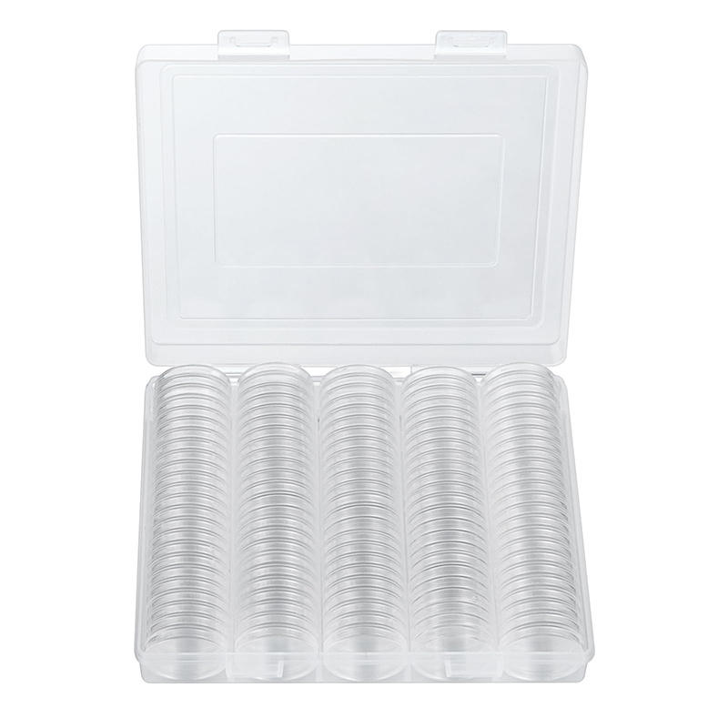 100PCS Clear Coin Holder Capsule Case with Protector Gasket Plastic Storage Box for Collectable Coins Medal Collection Supplies