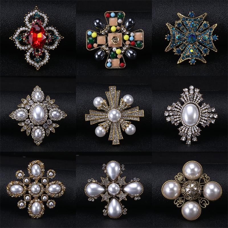 Vintage Baroque Pearl Brooch Exaggerated Cross Brooch Brooch Fashion Multifunctional Clothing Accessories — buy online with free worldwide shipping!