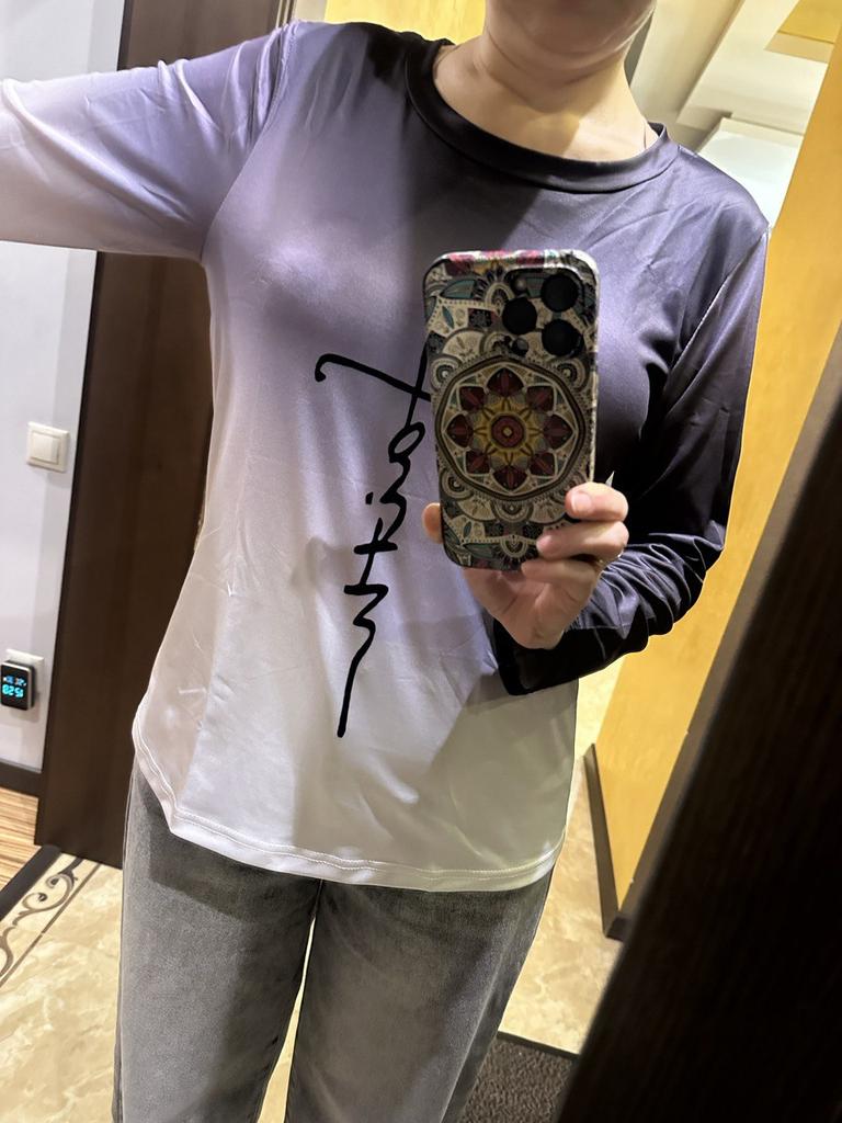 2024 Gradient Faith Letter Print Women's T-shirt Long Sleeve Crop Top Female Graphic Blouse Plus Size Women's Clothing Shirts — buy online with free worldwide shipping!