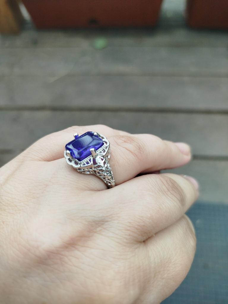 Vintage Women Blue Gemstone Tone Filigree Wedding Ring — buy online with free worldwide shipping!