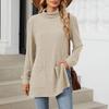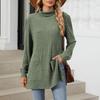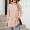 Women's Fashionable Solid Color Half High Neck Long Sleeved Wide Hem Slit T-shirt Top — buy online with free worldwide shipping!