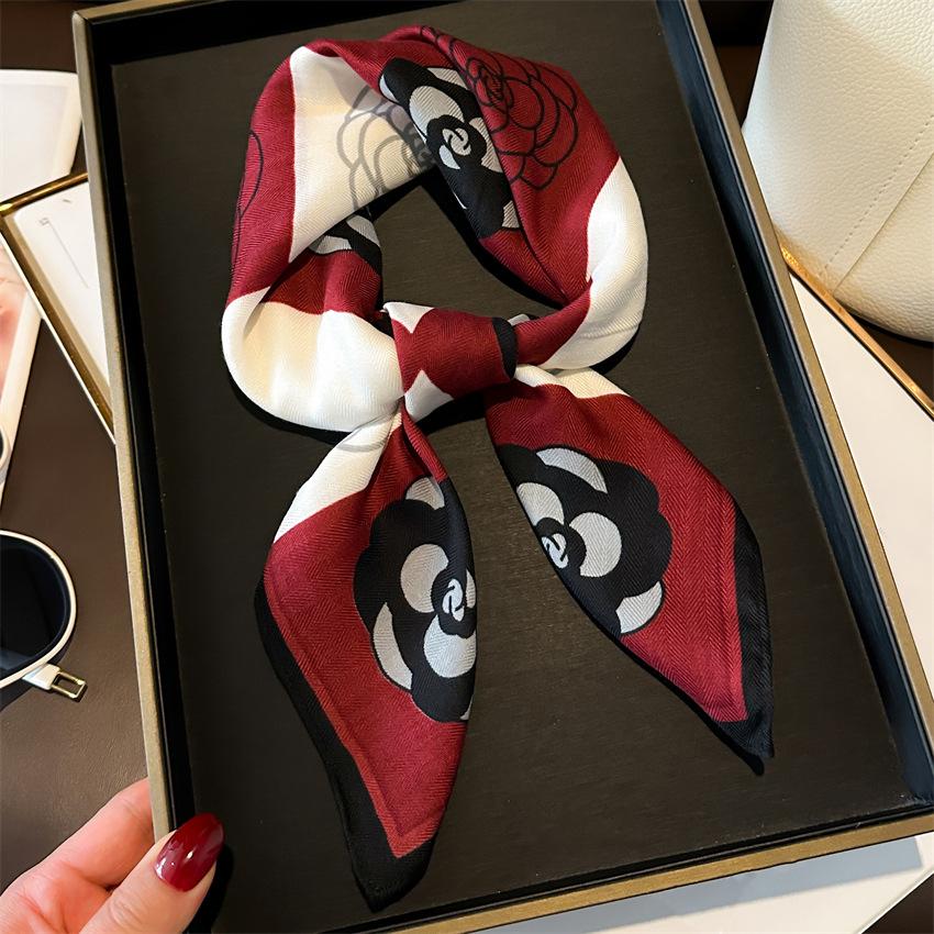 Chessboard Camellia Scarf 65 × 65Cm Thin Versatile Neck Scarf Cotton And Linen Feel Velvet Scarf Women