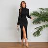 Autumn Fashion Ethos Medium High Neck Pleated Slit Slim Long-sleeved Dress Woman