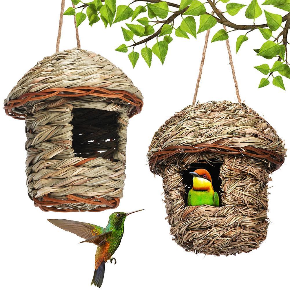 Pure natural materials: The hanging birdhouse is made of natural dry hibiscus grass, which is environmentally friendly and biodegradable, strong and durable, and not easily deformed.