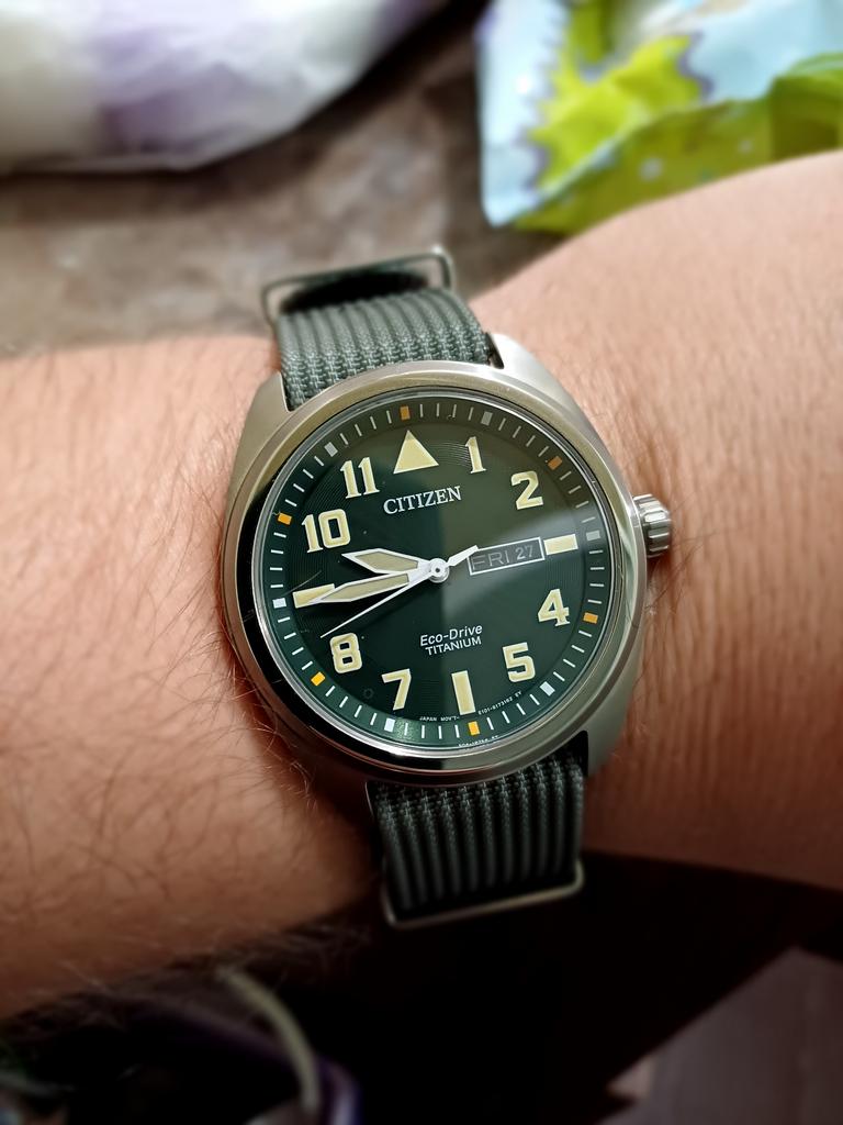 The package took 3 weeks to arrive. The watch is excellent: lightweight and durable titanium, sapphire, Eco-drive, WR100M, good lume, Japan! Date change at 00 hours, day of the week change from 2 to 3 hours. Probably the best choice under $250. I RECOMMEND!