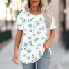 T Shirts For Women Pleated Round Neck Dressy Casual Blouses Printing Short Sleeve Summer Tops Loose Fit — buy online with free worldwide shipping!