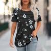 T Shirts For Women Pleated Round Neck Dressy Casual Blouses Printing Short Sleeve Summer Tops Loose Fit