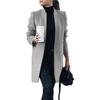Womens Vintage Autumn and Winter Woolen Long Sleeve Keep Warm Long Coat Stand Collar Wool Suit Jacket Overcoat