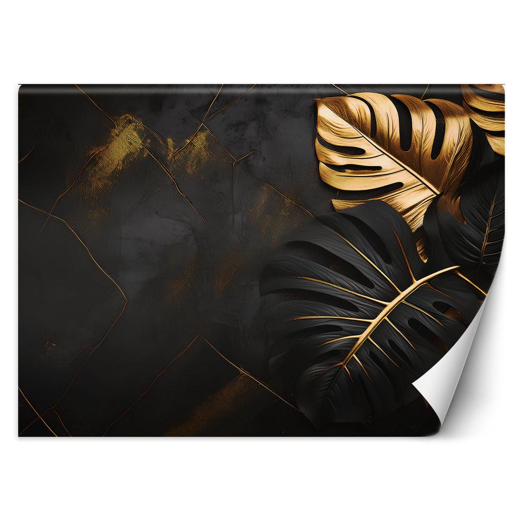 Wallpaper gold and black monstera leaves on abstract background — buy online with free worldwide shipping!