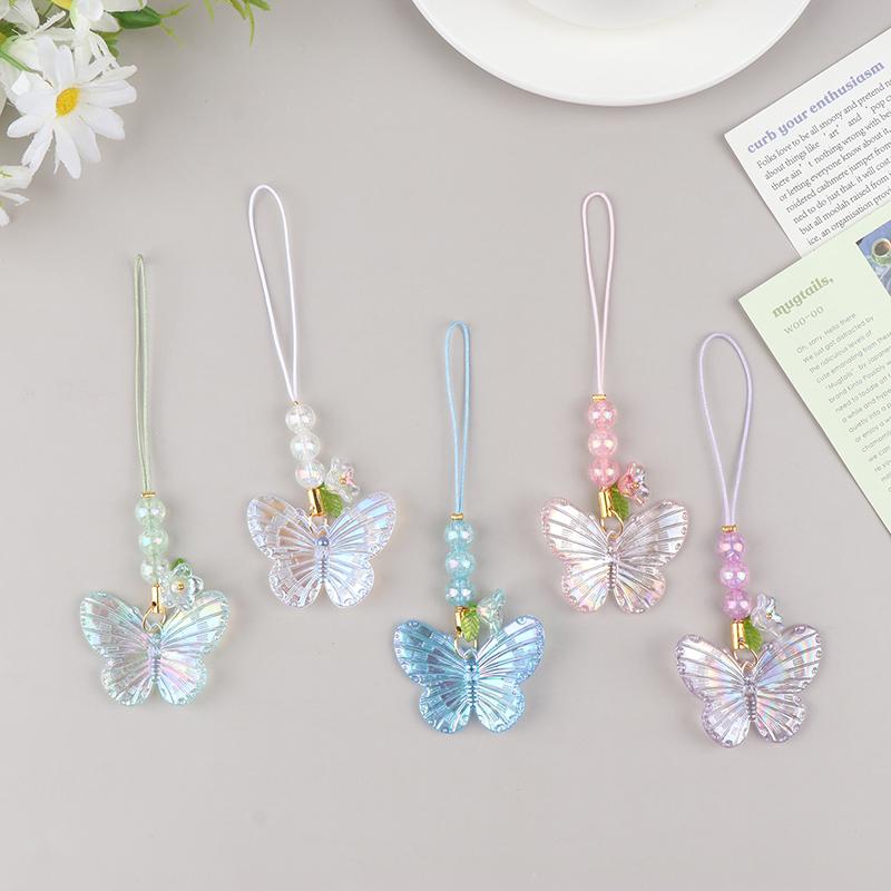 Cute Sweet Butterfly Pendant Phone Lanyard Cellphone Case Strap For Girls Phone Chains Car Keychain