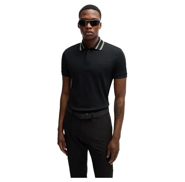 Super soft cotton interlock polo shirt by BOSS. Standard fit model with stripes on the collar and logo on the chest. Peculiarities: - Cuffs: flat knit cuffs - Landing: standard cut - Neckline: flat knit collar. Specifications: - Lining: 100% polyamide (recycled) - Insole: 10% polyurethane, 90% polyamide - Insert: 10% elastane, 90% polyamide - Lining: 100% Polyester - Quality: 100% cotton - Sole: 100% thermoplastic polyurethane - upper material: 100% cow leather - Filler: 40% polyester, 60% polyester (recycled). - Belt: 13% elastane, 34% polyester, 53% polyamide
