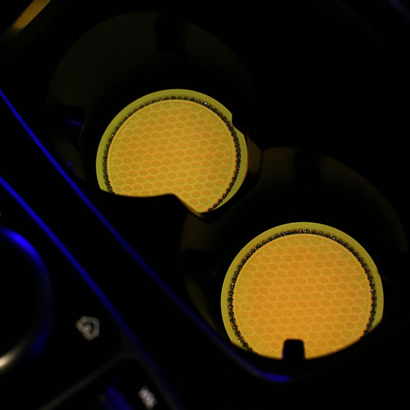2pcs Non-slip Car Water Cup Pad Luminous Car Coaster Pad Mat Cup Bottle Holder Rhinestone Rubber Pad Mat Car Styling Accessories
