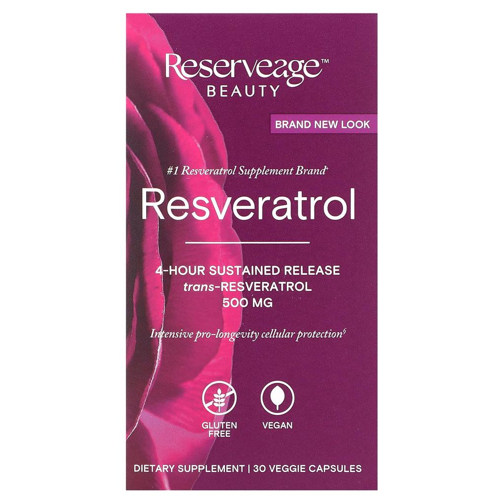 Reserveage Beauty, resveratrol, 4 hour sustained release, 500mg, 30 veggie capsules