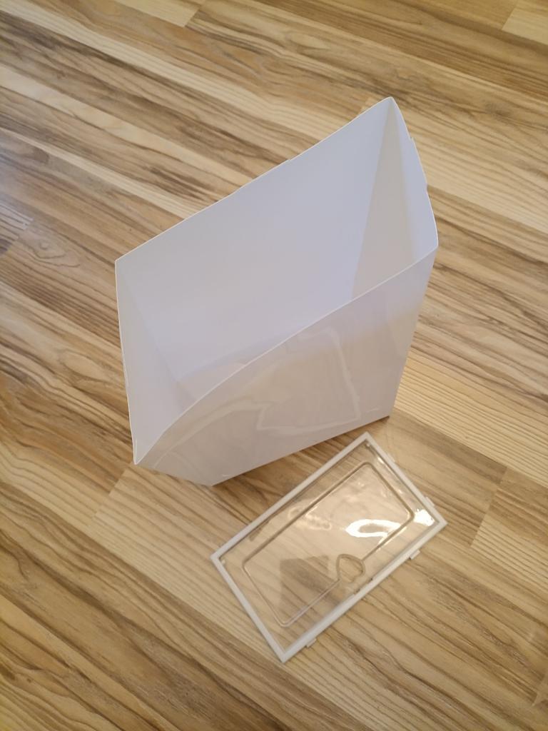 Very "delicate" and unreliable design: the lid barely holds, the box itself will collapse if a cat steps on it. It is only large enough to fit children's or women's shoes with medium heels.