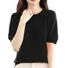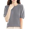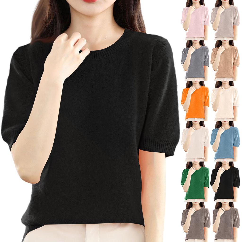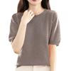 Women's Fashion Wool Knit Half Sleeve Round Neck Solid Colour Bottom Shirt Knitted T-Shirt Top
