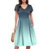 Women's Dress V Neck Sleeve Summer Dress Pleated Elastic Waist A-Line Dress