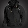 Men's Hooded Solid Color Sweater, European And American Youth Sports Multi Pocket Patch Leather Sweater Jacket