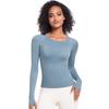 Auroth Long Sleeve Yoga Shirts With Thumb Hole Women Gym Sports Top Solid Color Running Slim Stretch Fitness Shirts