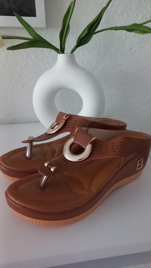 Beautiful sandals, beach shoes, summer shoes with flat platform 👍👍❗️ Delivery time: 🚚🚛✈️✈️✈️15 days to Germany. Delivery includes: A pair of beautiful sandals in the appropriate color and size. The product is available in 7 different colors . The product is available in sizes from 35 to 43 . I ordered the shoes in size 37 in brown and they are a bit big for me! The shoes run small, so you have to order them in a size larger. The color of the shoes is exactly as pictured.👍👍👍👌👌👌❗️ I usually wear size 37. My foot length is 23.8 cm. These sandals are a bit small for me. You have to order one size larger. The shoes are very light and comfortable, seem to be well made and do not have an unpleasant chemical smell. I do not feel them on my feet at all. TOP!!! I am very satisfied with the quality of the shoes!👍👍👍✅️ The product is ideal for everyday wear. They are perfect as beach shoes👍👍👍. It will be perfect for summer and vacation. 👍 ✅️❗️🔝🔝🔝 Summary✅️: Very nice sandals, but you have to order a size larger. They run small. Thank you joom and the seller 😘😘🙏 5 stars 🌟 🌟 🌟 🌟 🌟