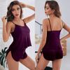 Women's Summer 2 Piece Loungewear Set Solid Satin Homewear Cami Top Shorts Pajama Set Thin Sexy Sleepwear