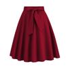 Women's Fashionable All-match Solid Color Skirt With Natural Color Belt Waist And Wide Swing Skirt
