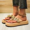 New Plus Size Herringbone Slippers Women Flat Beach Shoes 2024 Summer Vintage Metal Chain Platform Women‘s Flip-Flops Sandals