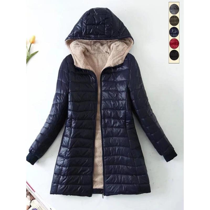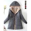 New Mid Length Korean Edition Hooded Fit Women Jackets Autumn Winter Mid-length Office Cotton Coats Warm Lamb Fleece Parkas