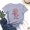 Summer Women's Pink Printed Dinosaur Pure Cotton Loose Round Neck Short Sleeved T-Shirts Women’s — buy online with free worldwide shipping!