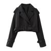Vintage Belt Cropped Trench Jacket Women Long Sleeve Lapel Fashion Coat Autumn Winter Double Breasted Tops Female Streetwear