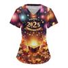 Women's Fashion V-neck Short-sleeved Overalls With Pockets 2025 Christmas Print Top