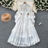 New Heavy Craft Lace Embroidery Hollow Out Party Evening Long Dress Women's Stand High Waist Lantern Sleeve Dresses Holiday