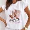 Summer Floral Girl Printed Base Shirt Cute Cartoon Round Neck Plus Size Pure Cotton Short Sleeved Top T-Shirts Women’s